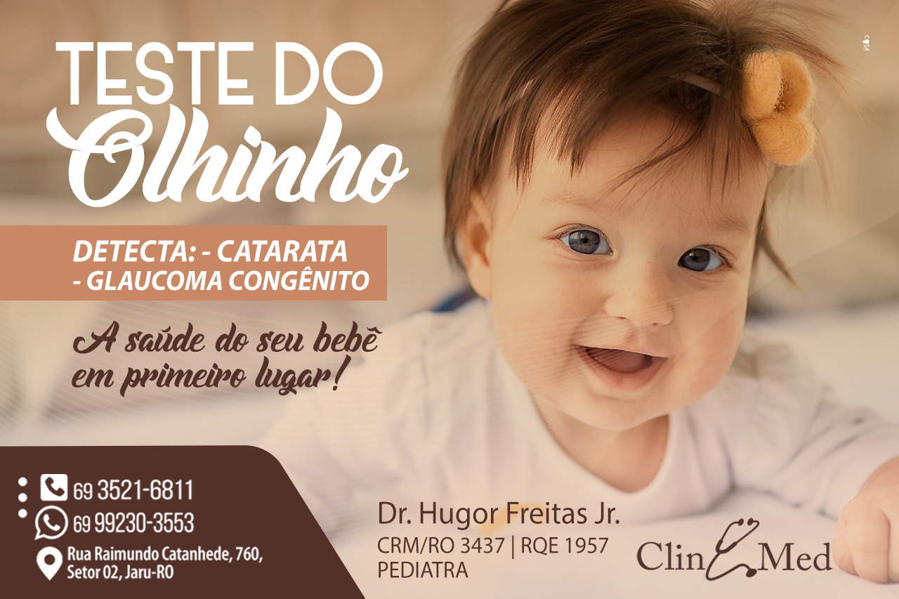 A Clin Med comunica a toda a população do Município que está realizando o teste do Olhinho no seu bebê com o pediatra especialista Dr. Hugo Freitas Jr. que estará atendendo sob agendamento de consulta.