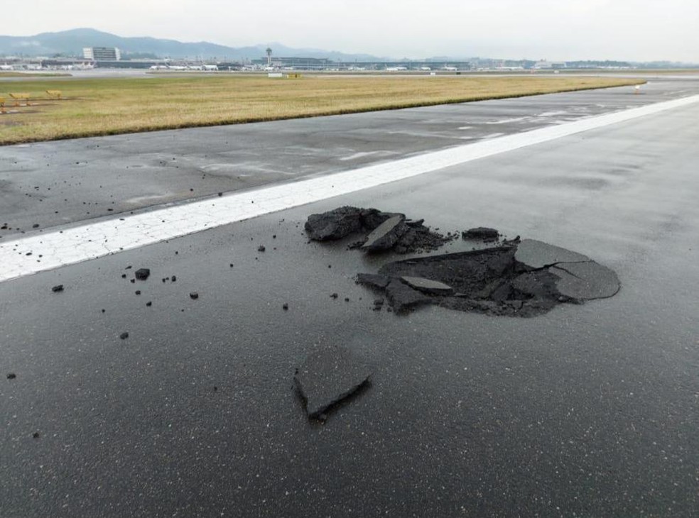 Estrago em pista do Aeroporto de Cumbica (SP) provocado pela queda de um raio — Foto: Divulgação