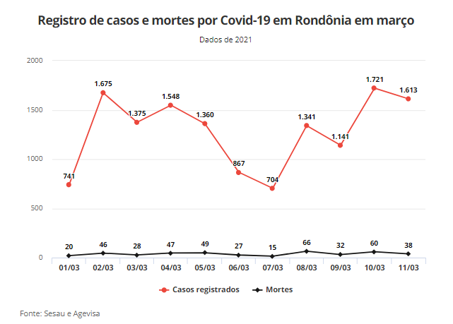 Rondônia registra 38 novas mortes por Covid-19 e 1.613 casos nesta quinta-feira (11)