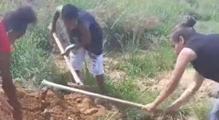 Nas imagens, é possível ouvir da pessoa que faz a gravação que o grupo está enterrando a própria mãe.
