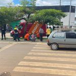 Jaru: Acidente envolvendo um automóvel Fiat Uno e uma motoneta deixa mulher ferida