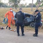 Jaru: Condutor de Corolla fica preso em ferragens ao colidir em árvore na entrada do Jardim Europa