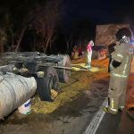 Jaru: carreta carregada de milho tem princípio de incêndio controlado por motoristas na BR-364