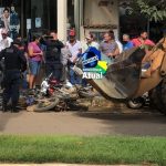 Carregadeira perde freio e passa por cima de motocicletas em Buritis