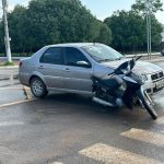 Jaru: Fiat Mobi tem pneu estourado, perde o controle e colide com veículo estacionado