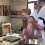 No vídeo, é possível ver o bebê pelado e chorando enquanto´é erguido pelo padre, que começa a fazer as orações. A criança é mergulhada rapidamente na fonte, escorregando com uma...