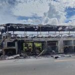 Ônibus de passageiros fica destruído após pegar fogo na BR-364 em RO