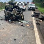 Viatura da PRF roda na pista e fica destruída após atingir carreta boiadeira na BR-364