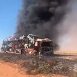 Fogo destrói caminhão-cegonha e 11 carros na BR-364