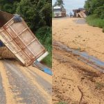 Jaru: Carreta carregada de soja tomba na BR 364 próximo a Frigon