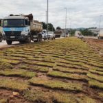 Prefeitura de Jaru realiza plantio de grama em canteiro central da BR-364