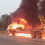 Carreta pega fogo na BR-364 durante a manhã deste sábado
