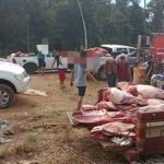 CARGA SAQUEADA: Caminhão de carne de empresa Vilhenense tomba em rodovia de MT