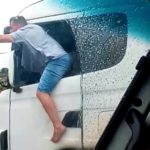 Um motorista foi filmado com parte do corpo para fora do caminhão e segurando uma garrafa de bebida alcoólica enquanto o veículo estava em movimento, na BR-376, no norte...