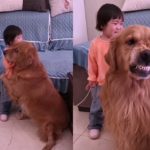 Golden retriever protege menina ao vê-la chorando após mãe dar bronca; momento viralizou