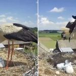 Cegonha joga filhote do ninho e deixa a web em estado de choque: 'Partiu meu coração'