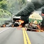 Fogo destrói carreta e caminhão na BR-163 entre Sinop e Itaúba em ataque criminoso de manifestantes