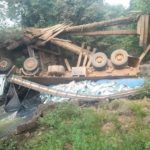 Ponte de madeira desaba e caminhão cai dentro de rio em Gov. Jorge Teixeira