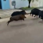 Porcos do Mato são flagrados transitando no perímetro urbano de Ji-paraná