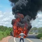 Motociclista sofre mal súbito e morre ao bater de frente em ônibus, que pega fogo em rodovia de MT