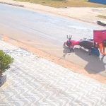 Câmeras de segurança da Funerária Pax Cristo Redentor, localizada na Av. Florianópolis, flagraram o momento em que um motociclista desce a rua em alta velocidade e tenta desviar do...