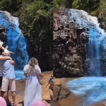 Casal tinge cachoeira durante chá revelação e é alvo de críticas; veja vídeo