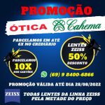 A Ótica Cahema anuncia que a partir de hoje (22) toda linha das lentes Zeiss estará com 50% de desconto!!! São lentes de ótima qualidade e sua compra ainda...