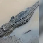 Jacaré de quatro metros é abatido a tiro por pescadores no rio Madeira