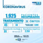 Em Jaru, atualmente são 45 casos ativos. Todos os pacientes apresentam sintomas leves da doença e se recuperam em casa. Não há registro de internações por Covid-19 no município...