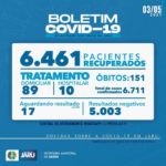 O município atingiu nesta segunda-feira (03) a marca de 6.711 casos confirmados da Covid-19. Sendo que desse total, 6.461 pessoas já se recuperaram, e 99 estão ativos. 10 precisaram...