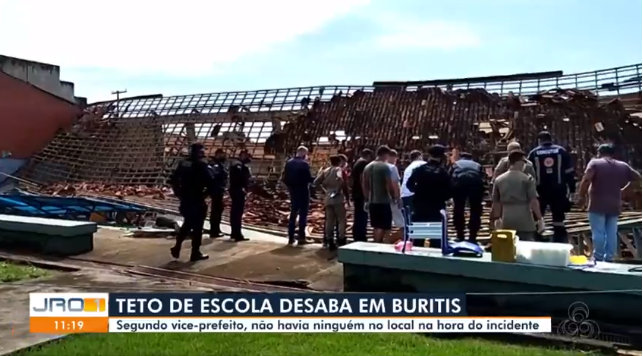 O teto da quadra de esportes da escola estadual de ensino fundamental e médio Buriti, desabou na manhã desta terça-feira (23) em Buritis (RO).