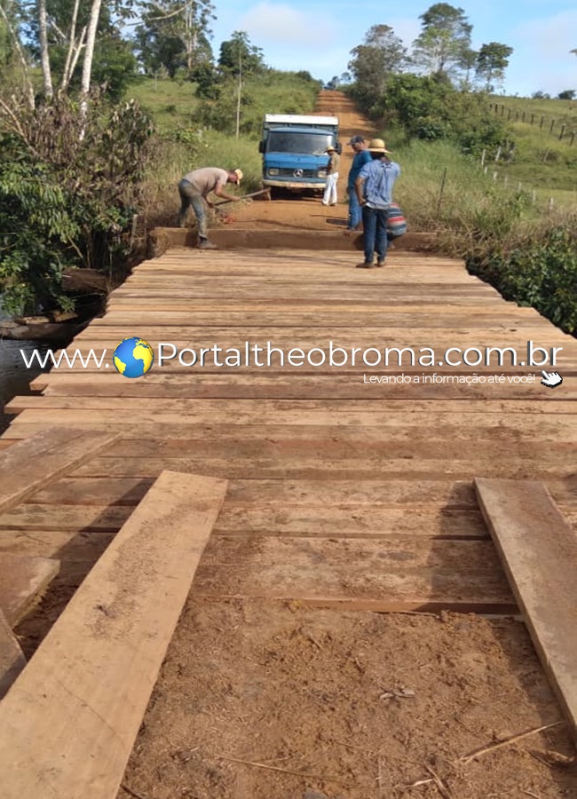 Moradores do travessão 14, zona rural de Theobroma-RO, cansados de esperar pelas promessas da prefeitura do município, decidiram tirar dinheiro do próprio bolso para reconstruir uma ponte que é de muita importância para eles. Muito revoltados com a demora em fazer a recuperação da ponte de madeira, alguns moradores da linha se reuniram e nesta semana fizeram a recuperação de forma braçal, e com recursos próprios.