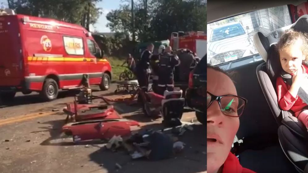 A mulher de 34 anos ficou presa às ferragens e o Corpo de Bombeiros necessitou do uso de desencarcerador para a retirada da vítima do veículo. A criança de dois anos, que estava no banco de trás, em uma cadeirinha, teve apenas ferimentos leves.